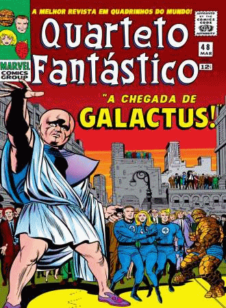 Galactus, o Devorador de Mundos. Ele é uma das entidades mais poderosas e temidas do Universo Marvel. Não há quase nada na existência que ele não possa fazer ou realizar, indiferente ao local ou época em que esteja pois seu incomensurável poder cósmico é tão espantoso que chega a beirar a onisciência e a onipotência. Sempre guiado por seu arauto, o Surfista Prateado, a procura de mundos que possa consumir e saciar sua imensa fome. E agora ele escolheu a Terra para lhe prover a energia necessária para seu sustento, e com isso exterminar toda a vida de nosso planeta! Cabe agora aos membros do Quarteto fantástico encontrar um meio de acabar com essa ameaça cósmica... Arco completo em 3 Edições reunidas em 1 Link.